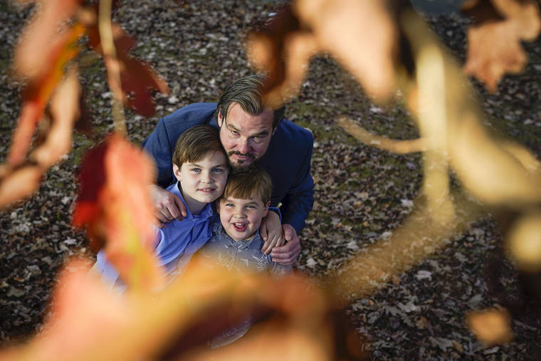 Christopher Hughey poses for a picture with his sons, Henry, 5, Harrison, 9, on Saturday, Nov. 21, 2020, in Charlotte, N.C. Food experts say Americans nervous about making their first Thanksgiving meals can follow a few basic tips to avoid disaster. (AP Photo/Chris Carlson)
