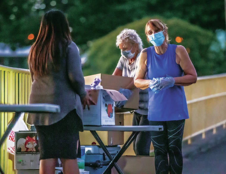 Though the annual event had to pivot from its sit-down meal to a drive-through format because of the coronavirus pandemic, turkey dinners with all the traditional trimmings were still provided to those in need.