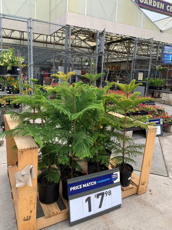 Araucarias do not have a pine scent, so if you miss the piney fragrance check out local stores and garden shops that sell mainland pines. They will often have cut branches available at little or no cost to incorporate into your Christmas scene. As a last resort, consider pine scented room deodorants!