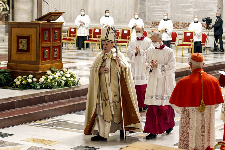 ROME — Pope Francis raised 13 new cardinals to the highest rank in the Catholic hierarchy Saturday and immediately warned them not to use their titles for corrupt, personal gain, presiding over a ceremony marked from beginning to end by the coronavirus pandemic.