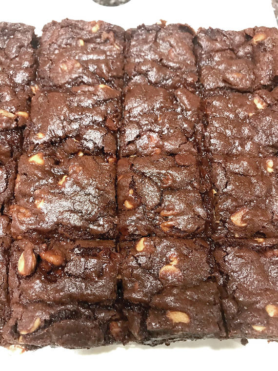 Preheat the oven to 350 degrees. In a bowl, combine two eggs, melted butter, vanilla extract and brownie mix. Spread into a greased 8-inch square baking pan. Bake until set, 25-30 minutes (do not overbake). Cool on a wire rack. Cut into 16 squares.