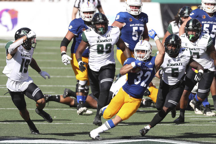 HONOLULU — Tyler Nevens and Kairee Robinson each had over 100 yards rushing and combined for three touchdowns, and San Jose State played its first game in three weeks and beat Hawaii 35-24 on Saturday.