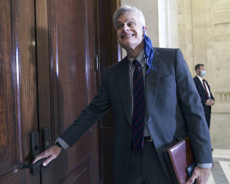 Rep. Bill Cassidy, R-La., arrives for Senate Republicans leadership elections but the door was locked, on Capitol Hill in Washington, Tuesday, Nov. 10, 2020. (AP Photo/J. Scott Applewhite)