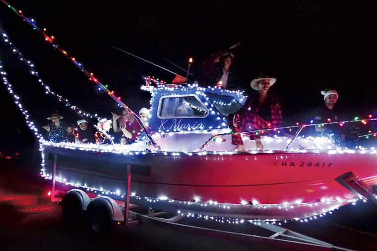 Hilo Trollers fishing club featured illuminated boats during the 2019 Hilo Christmas parade. (Tim Wright/Special to the Tribune-Herald)