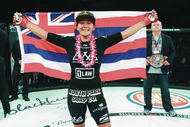 Bellator photo Hawaii’s Ilima-Lei Macfarlane can forget about COVID-19, which delayed her wedding – as well as an abuse lawsuit she’s joined against a former Punahou basketball coach – when she defends her flyweight title against Juliana Velasquez on Thursday at Bellator 254 in Connecticut.