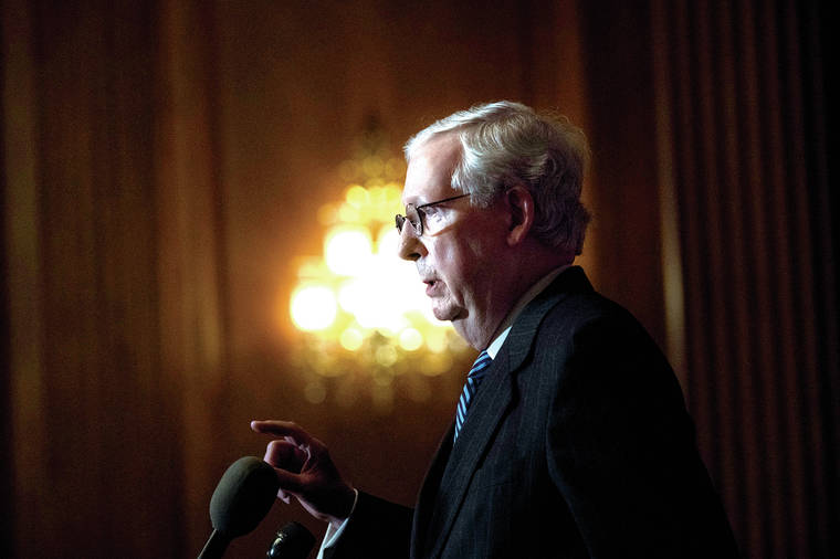 WASHINGTON — Fending off a messy fight that could damage Republicans ahead of Georgia U.S. Senate runoffs, Majority Leader Mitch McConnell warned fellow GOP senators Tuesday not to join President Donald Trump’s extended assault on the Electoral College results.