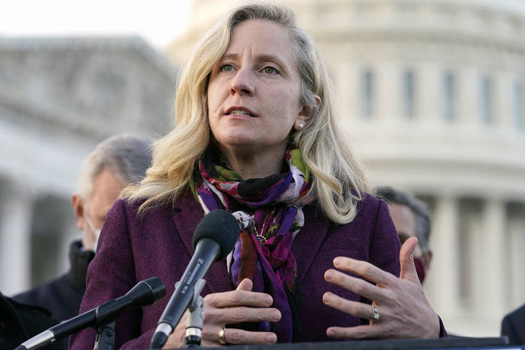 Rep. Abigail Spanberger, D-Va., speaks during a news conference with the Problem Solvers Caucus about the expected passage of the emergency COVID-19 relief bill, Monday, Dec. 21, 2020, on Capitol Hill in Washington. Congressional leaders have hashed out a massive, year-end catchall bill that combines $900 billion in COVID-19 aid with a $1.4 trillion spending bill and reams of other unfinished legislation on taxes, energy, education and health care. (AP Photo/Jacquelyn Martin)