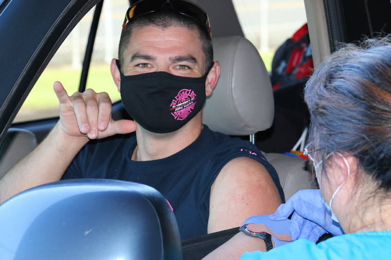 Hawaii County first responders received the first round of COVID-19 vaccinations Wednesday morning at the Afook-Chinen Civic Auditorium in Hilo.
