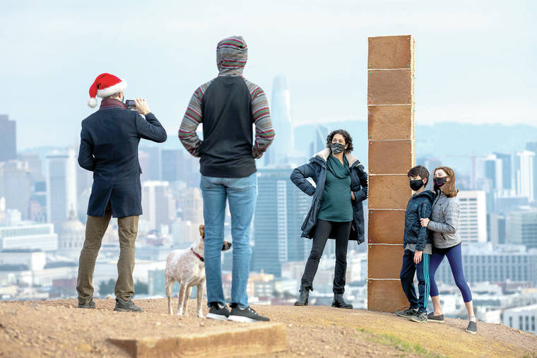 SAN FRANCISCO — In true pop-up art fashion, a nearly 7-foot-tall monolith made of gingerbread mysteriously appeared on a San Francisco hilltop on Christmas Day and collapsed the next day.