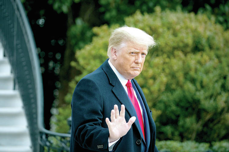 President Donald Trump waves as he departs on the South Lawn of the White House, on December 12, 2020, in Washington, D.C. (Al Drago/Getty Images/TNS)