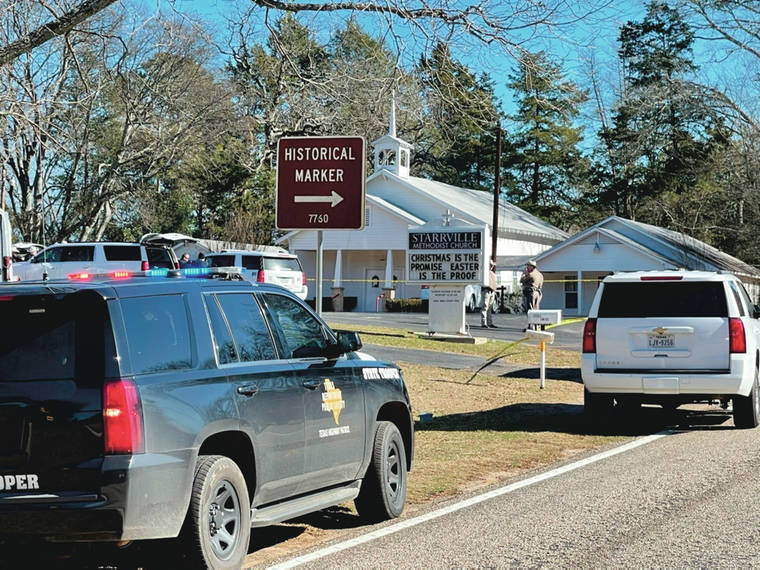 WINONA, Texas (AP) — A pastor was killed and two other people were injured in a shooting at an East Texas church Sunday after the pastor confronted a man who had hidden from police in the church overnight, a local sheriff said.