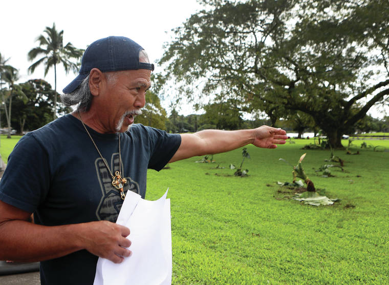 As claimed by Tamashiro and others occupying the same space and planting a kanaka garden in 2012 and 2013, he said the county and the state Department of Land and Natural Resources had taken what he described as crown lands deeded to the Hawaiian people without due process.