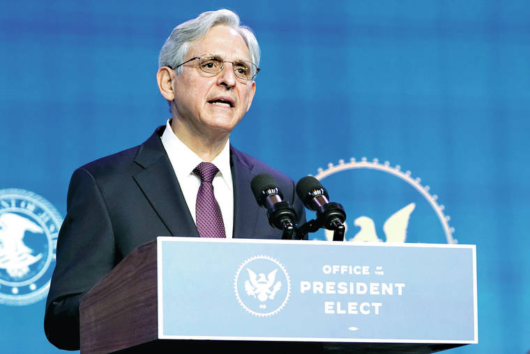WILMINGTON, Del. — President-elect Joe Biden on Thursday introduced his pick for the nation’s top law enforcement official, turning to experienced judge Merrick Garland to help de-politicize the Justice Department and restore the rule of law after what the incoming president described as four years of lawlessness under President Donald Trump.