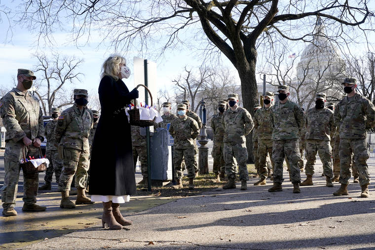 Psaki said the president thanked Hokanson and the Guard for their help the last few weeks and offered his assistance if Hokanson needed anything. First lady Jill Biden visited Guard troops outside the Capitol on Friday, bringing them cookies and thanking them for protecting her family. She noted that the Bidens’ late son, Beau, served in the Delaware Army National Guard.