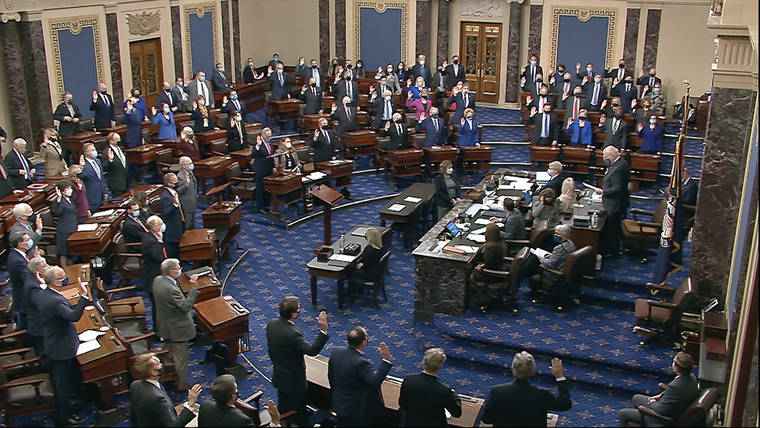 The vote means the trial on Trump’s impeachment will begin as scheduled the week of Feb. 8. The House impeached him Jan. 13, just a week after the deadly insurrection in which five people died.