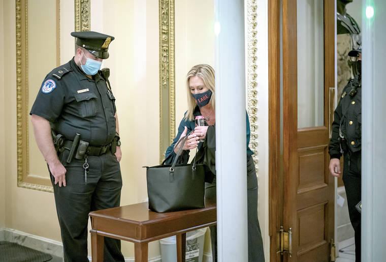 Still, there’s greater pressure on political leaders to address extremism after a pro-Trump mob staged a deadly insurrection at the U.S. Capitol. California Democratic Rep. Jimmy Gomez announced Wednesday night that he was readying a resolution to expel Greene from Congress because of her past social media activity.