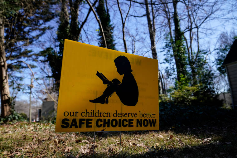 A sign that reads “our children deserve better safe choice now” is seen on Friday, Jan. 15, 2021, in Decatur, Ga. Just down the road from the U.S. Centers for Disease Control and Prevention, in a community flush with resident health professionals, the Decatur school system had no shortage of expert input on whether to resume in-person classes amid the coronavirus pandemic. Scores of public health and medical professionals from the affluent, politically liberal Atlanta suburb have weighed in about what’s best for their own kids’ schools.(AP Photo/Brynn Anderson)