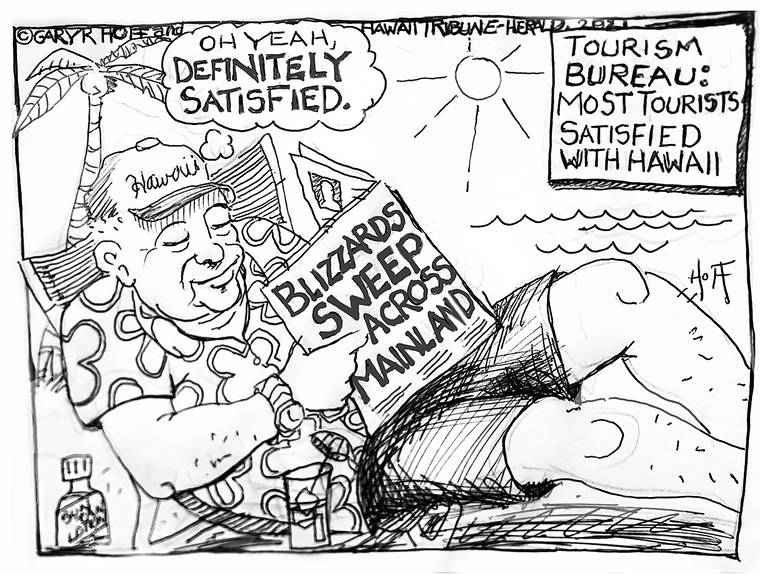 The Big Island as seen by Hawaii Tribune-Herald cartoonist Gary Hoff.