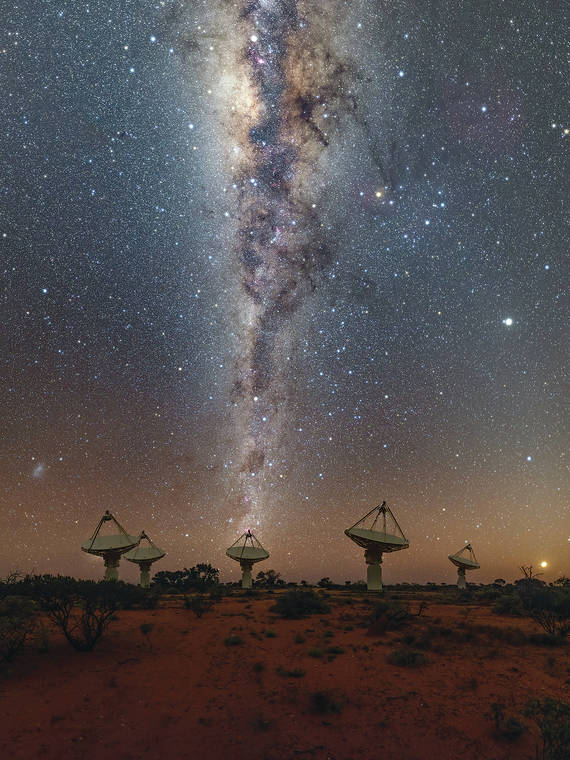 To catch one, the team, led by Keith Bannister of the Commonwealth Scientific and Industrial Research Organization, developed a new detection method using the Australian Square Kilometre Array Pathfinder radio telescope, which consists of an array of 36 dish antennas. Because they’re spread across about 4,000 square meters, FRB 180924’s radio waves traveled to each antenna at very slightly different times, just a fraction of a billionth of a second. Bannister’s team was able to replay the data from each dish and triangulate the FRBs source. Follow-up observations using Keck Observatory as well as the Very Large Telescope and Gemini South, both in Chile, then revealed the burst’s birthplace.