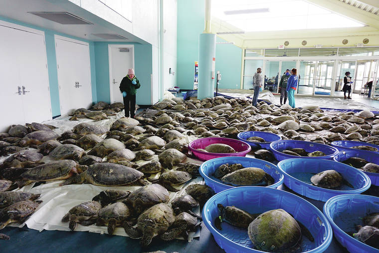 SOUTH PADRE ISLAND, Texas (AP) — Residents, some of whom lack heat or basic amenities in their own homes due to the unusually chilly weather, have been rescuing cold-stunned sea turtles and taking them to a convention center in a South Texas resort town.