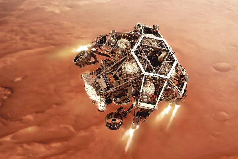 CAPE CANAVERAL, Fla. — A NASA rover streaked through the orange Martian sky and landed on the planet Thursday, accomplishing the riskiest step yet in an epic quest to bring back rocks that could answer whether life ever existed on Mars.