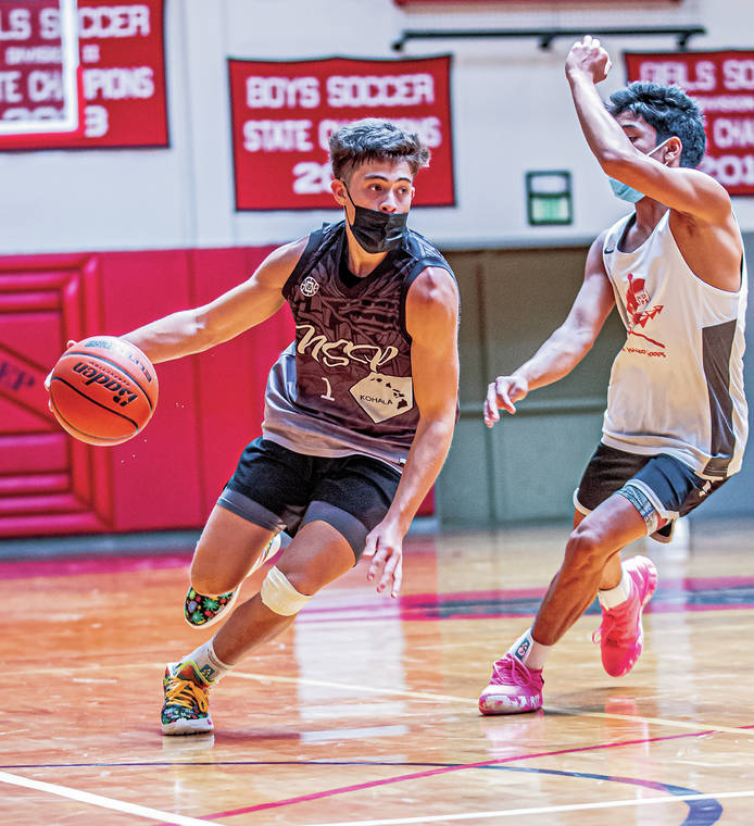 Even without All-BIIF big Molonai Emeliano, missing because of a college visit, Kapeliela’s team showed flashes of what made them last year’s HHSAA Division II champs. O’Shen Cazimero’s slashing ability meshed well with the smooth stroke of La’akea Kauka from beyond the arc; the junior duo combined to score 35 of Kohala’s 51 points in their first action on the court in 13 months: a 51-41 victory over the Kealakehe club team.