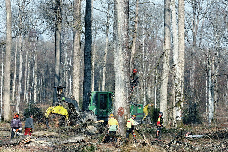 JUPILLES, France — Four French oaks that have stood for hundreds of years in a once-royal forest now have a sacred destiny. Felled Tuesday in the Loire region’s Forest of Berce, they were selected to reconstruct Notre Dame cathedral’s fallen spire.