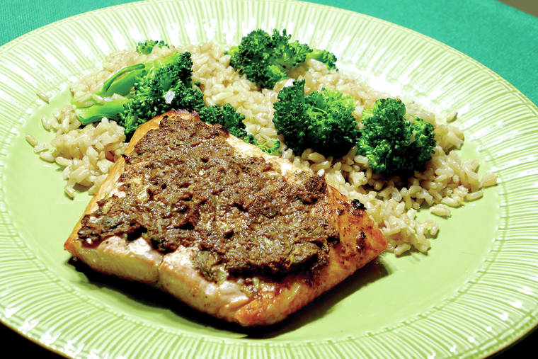 Five-Spice Salmon with Brown Rice with Broccoli (Linda Gassenheimer/TNS)