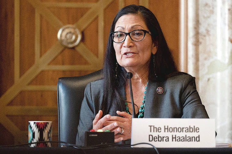 Sen. Maria Cantwell, D-Wash., said she appreciates Haaland’s leadership in the House on a range of issues, adding that Haaland’s status as a Native American “will give us an extra advantage on (tribal) issues that are so important to Indian Country overall.”