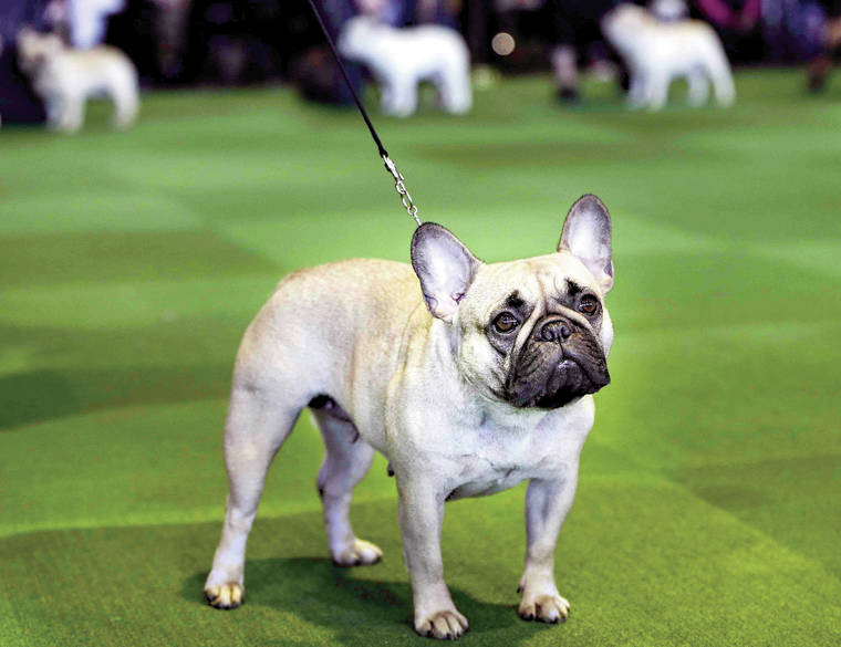 FILE - In this Feb. 16, 2015, file photo, a French bulldog competes at the Westminster Kennel Club show in New York. The French Bulldog is among the top ten popular breeds for 2020. (AP Photo/Seth Wenig, File)