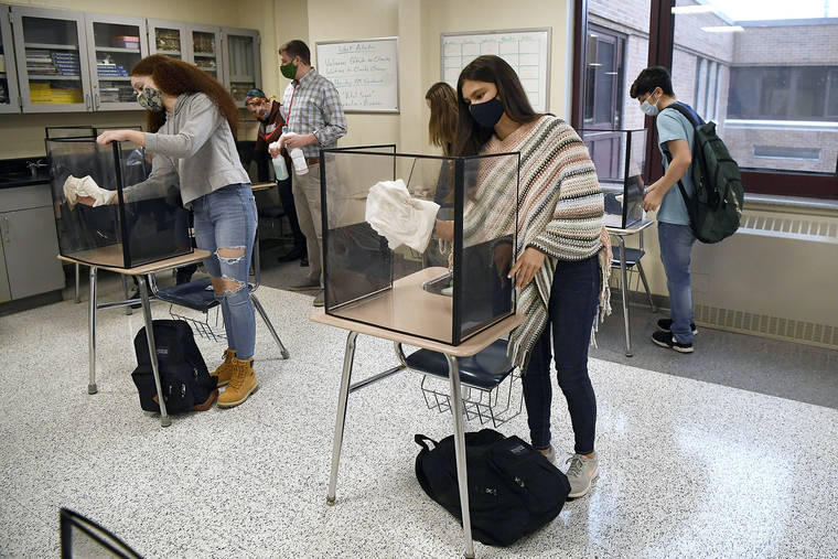 NEW YORK — Students can safely sit just 3 feet apart in the classroom as long as they wear masks but should be kept the usual 6 feet away from one another at sporting events, assemblies, lunch or chorus practice, the Centers for Disease Control and Prevention said Friday in relaxing its COVID-19 guidelines.