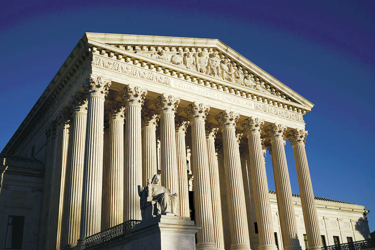 FILE - In this Nov. 2, 2020, file photo the Supreme Court is seen at sundown in Washington. (AP Photo/J. Scott Applewhite, File)