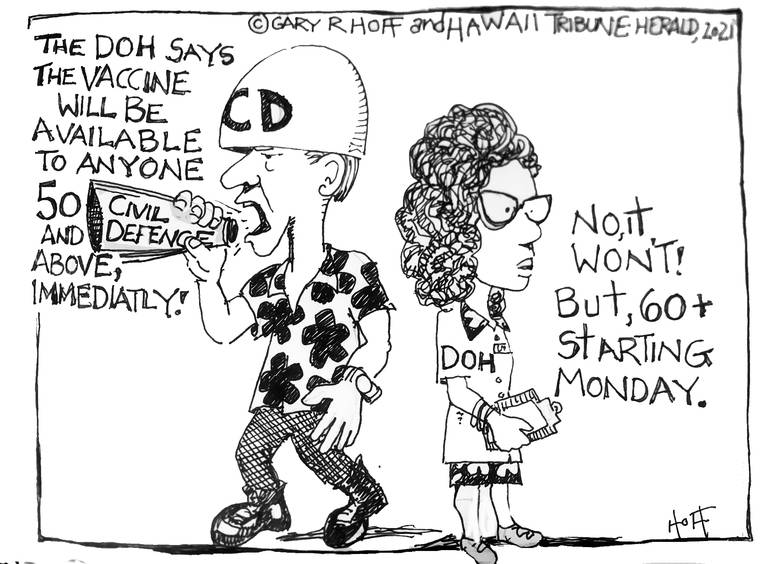The Big Island as seen by Hawaii Tribune-Herald cartoonist Gary Hoff.