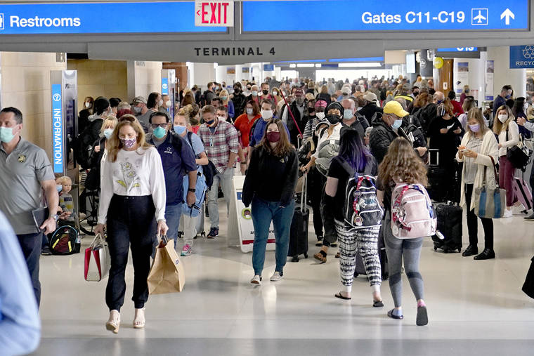 Passengers walk through a crowded terminal on March 26 at Sky Harbor International Airport in Phoenix as air travel increases. (AP Photo/Sue Ogrocki)