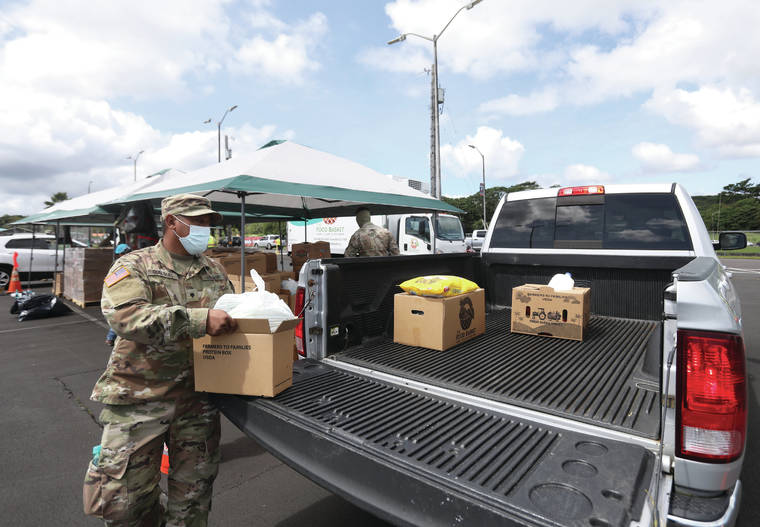 The Food Basket served 3,392 individuals Wednesday morning during an Ohana Food Drop at Keaau High School.