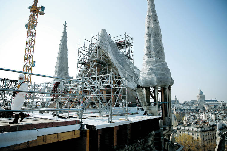 Cranes and scaffolding from the massive project scar the French capital’s skyline, and the rebuilding work could take decades. Officials said this month that the burned-out cathedral and its esplanade could remain under construction for another 15 or 20 years. But they pledge that Notre Dame will be at least be open for prayer and a “return to worship” in time for the 2024 Summer Olympics, which Paris is hosting.