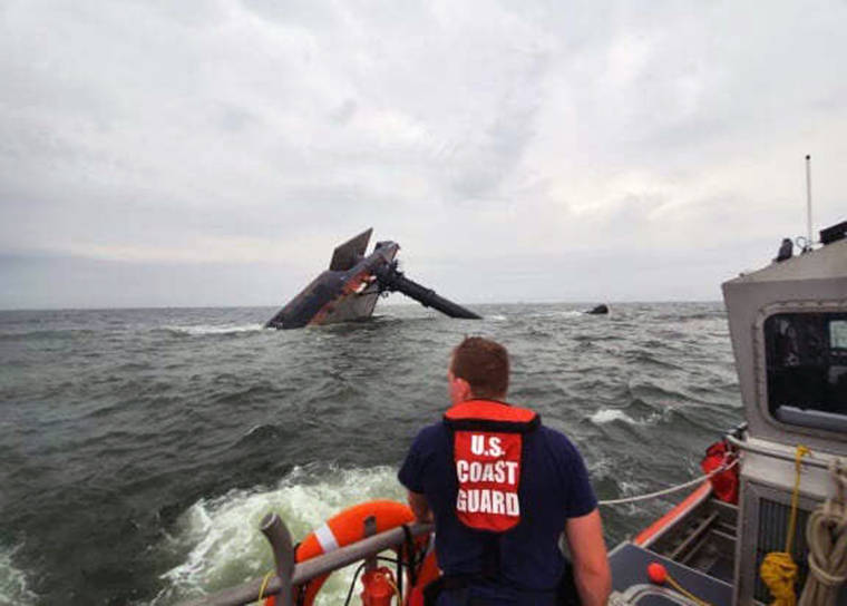 A helicopter crew from Bristow, a marine company, lowered life vests and VHF radios to them, he said. Two of the men dropped into the water and were picked up by the Coast Guard. About the same time, Good Samaritan vessels rescued four other people, he said. The Coast Guard was also able to talk to the three people still on the ship’s hull using the radios that had been dropped. Later Tuesday night the Coast Guard was notified that one person had fallen in the water and wasn’t seen again.