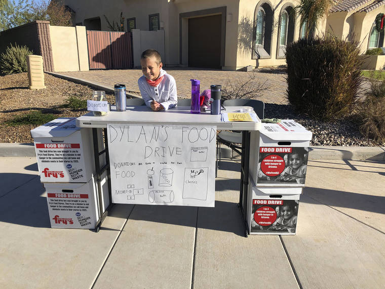 CHANDLER, Ariz. — Neighbors walked by during their morning stroll, passing families waved from their bikes and drivers slowed down long enough to read the hand-drawn sign — “Dylan’s Food Drive.”