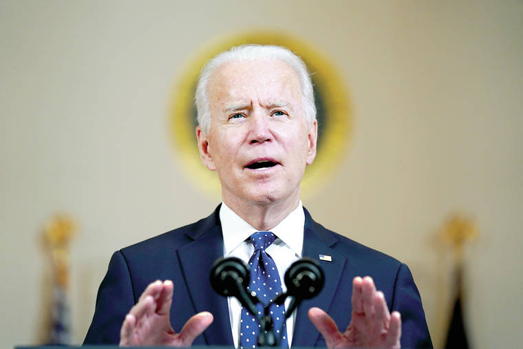 Biden and Harris called on Congress to act swiftly to address policing reform, including by approving a bill named for Floyd, who died with his neck under Chauvin’s knee last May. Beyond that, the president said, the entire country must confront hatred to “change hearts and minds as well as laws and policies.”