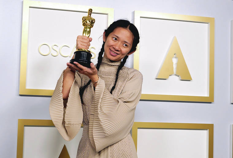 Chloe Zhao’s “Nomadland,” a wistful portrait of itinerant lives on open roads across the American West, won best picture Sunday at the 93rd Academy Awards, where the China-born Zhao also became just the second woman to win best director, and the first woman of color.