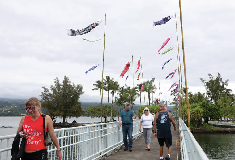 Organizations and families throughout East Hawaii have donated koinobori for the annual display, which stretches from Suisan Fish Market to Ponds Restaurant. The major part of the collection decorates the bridge to Mokuola, or Coconut Island.