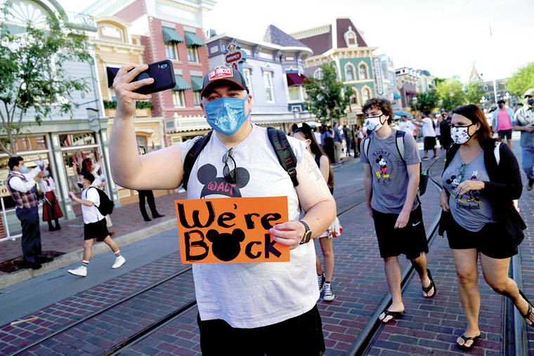 Visitors cheered and screamed with delight as the Southern California theme park swung open its gates for the first time in 13 months in a powerful symbol of the U.S. rebound, even though the self-proclaimed Happiest Place on Earth is allowing only in-state guests for now and operating at just 25% capacity.