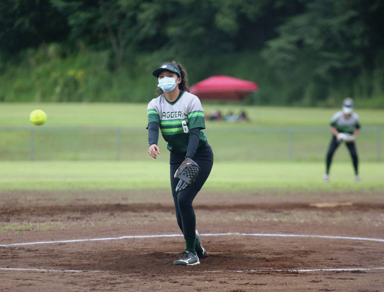 KELSEY WALLING/Tribune-Herald Pahoa’s Jaylynn Kaawaloa-Alidon pitched all five innings Tuesday against Ka'u as the Daggers picked up their first win.