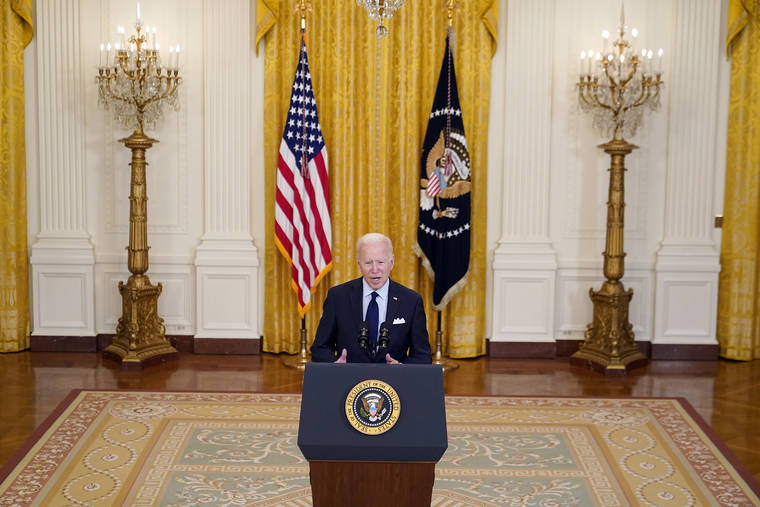 President Joe Biden speaks about the April jobs report Friday in the East Room of the White House in Washington. (AP Photo/Patrick Semansky)
