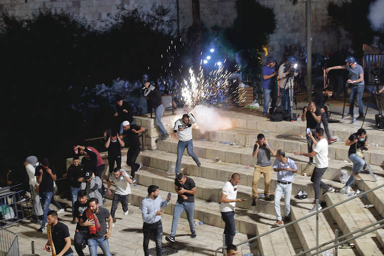 JERUSALEM — Israeli police on Saturday clashed with Palestinian protesters outside Jerusalem’s Old City during the holiest night of Ramadan in a show of force that threatened to deepen the holy city’s worst religious unrest in several years. Earlier, police blocked busloads of pilgrims headed to Jerusalem to worship.