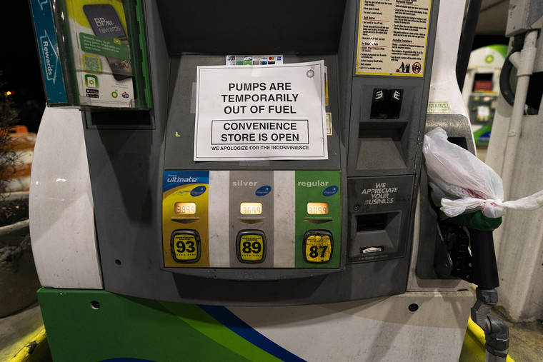 The tracking service GasBuddy.com on Friday showed that 88% of gas stations were out of fuel in the nation’s capital, 45% were out in Virginia and 39% of Maryland stations were dry. About 65% of stations were without gas in North Carolina, and nearly half were tapped out in Georgia and South Carolina.