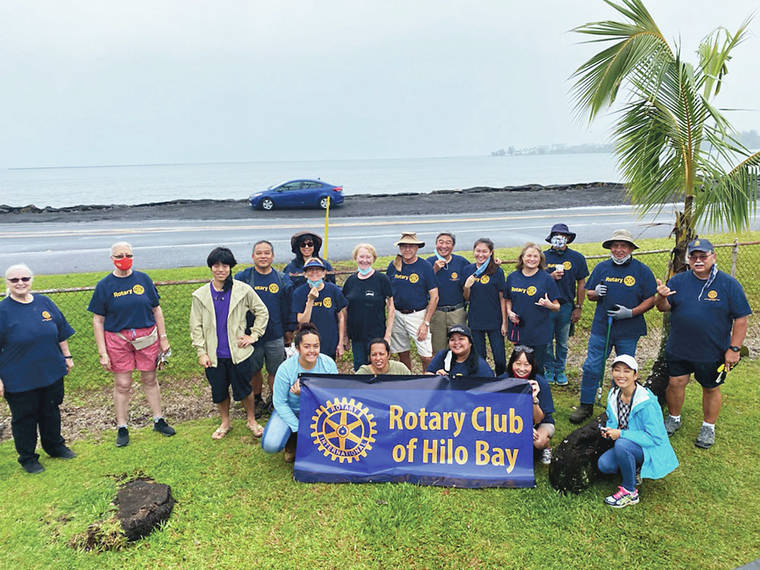 On a rainy Saturday morning in April, members of The Rotary Club of Hilo Bay volunteered their time to help cleanup downtown Hilo. They collected 268 pounds of trash and painted over graffiti from Haili Street to the Wainaku River, down to the Hilo Bayfront.