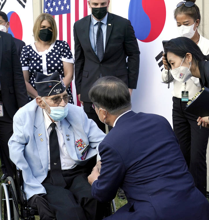 Moon, meanwhile, welcomed “America’s return” to the world stage and said both leaders pledged in their meeting to work closely toward denuclearization of the Korean Peninsula.