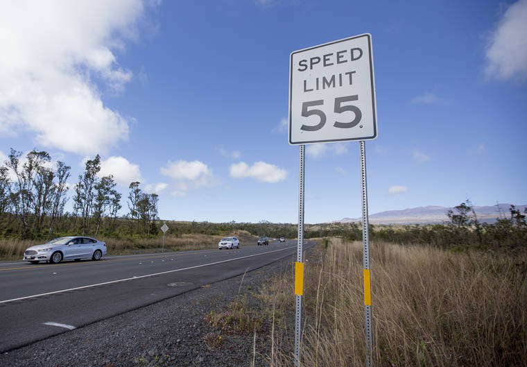 Tribune-Herald file photo A car passes by a speed limit sign on Saddle Road.