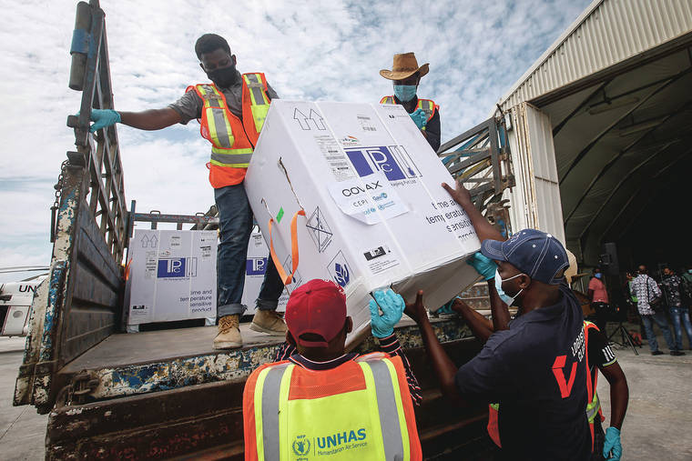 In this March 15 file photo, boxes of COVID-19 vaccine provided through the COVAX global initiative arrive at the airport in Mogadishu, Somalia. (AP Photo/Farah Abdi Warsameh, File)